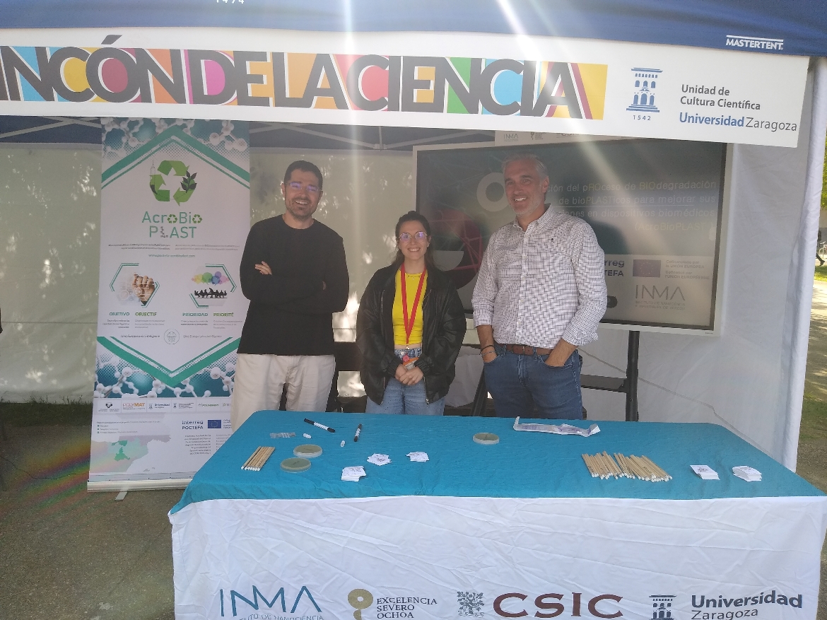 El proyecto AcroBioPLAST ha participado en la jornada de divulgación científica Green Week 2026 – El rincón de la ciencia, celebrada el pasado 17 de abril en la Universidad de Zaragoza (UNIZAR) y organizada conjuntamente con el Instituto de Nanociencia y Materiales de Aragón (INMA).